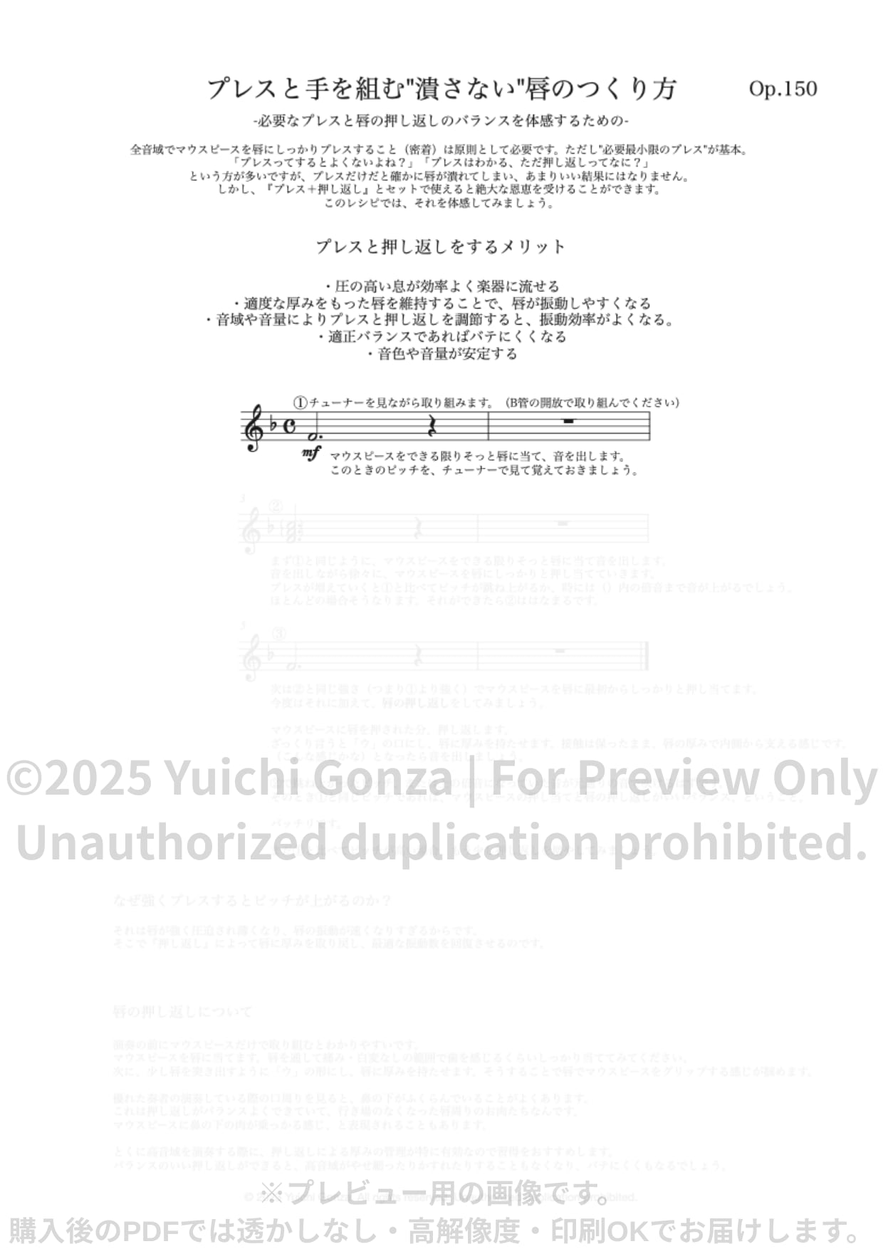 密着した唇をどう維持するか。「プレスは悪」という誤解を解き、楽器の圧力に対して唇を内側から「押し返す」ことで、潰れない唇の構造を作ります。限定の非売品ですがこのシステムには不可欠なため特別収録しました。