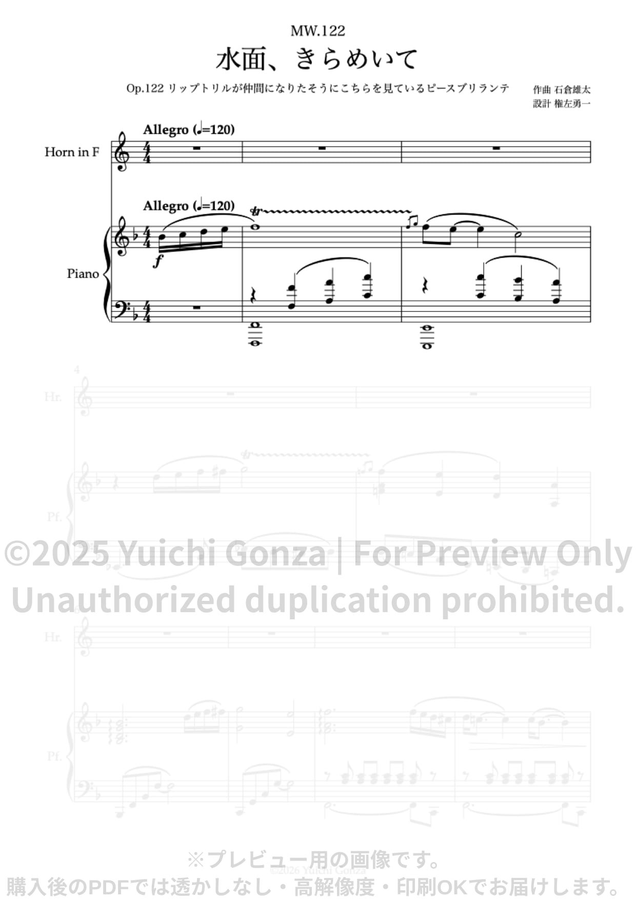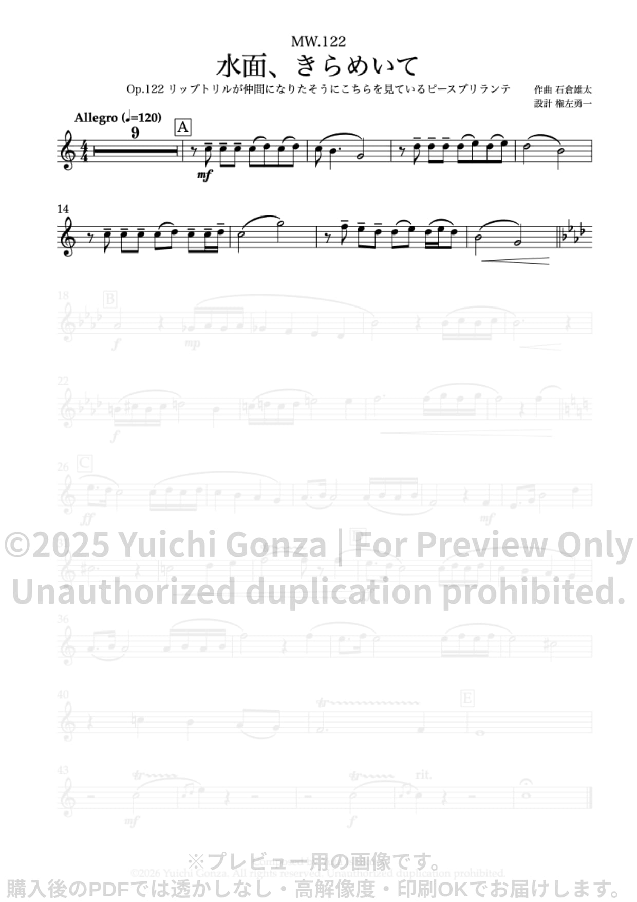 この楽曲「水面、きらめいて」は、その感覚を無機質な技術で終わらせず、音楽表現として昇華させるために作曲されたOp.122専用の実践曲です。